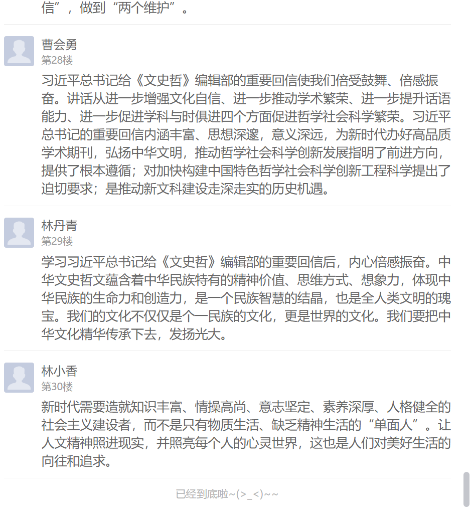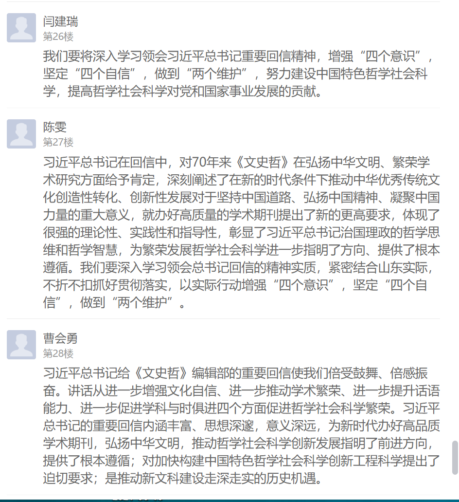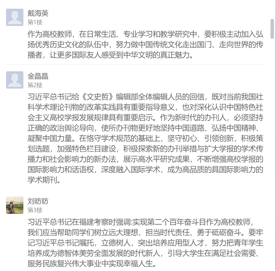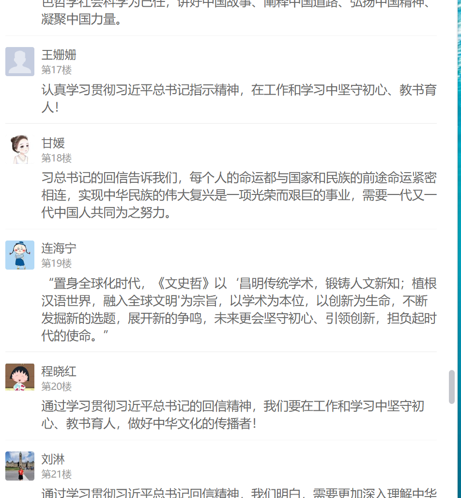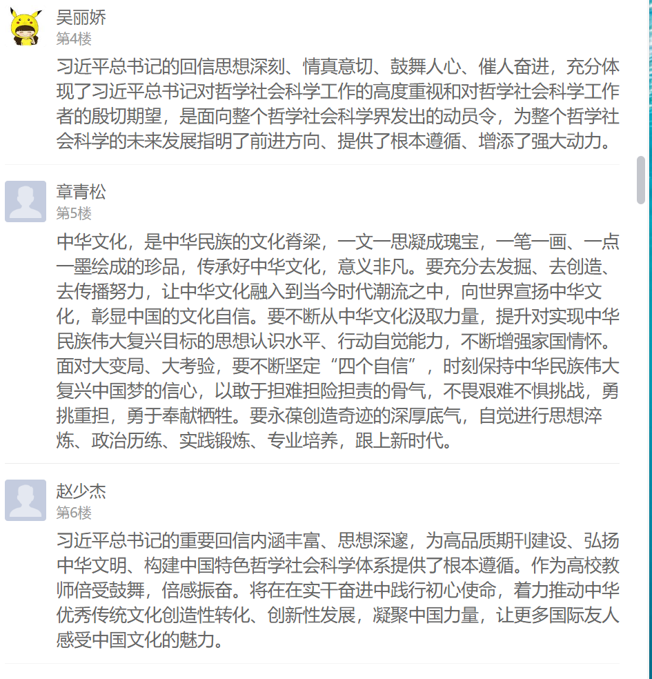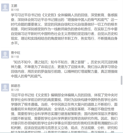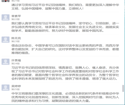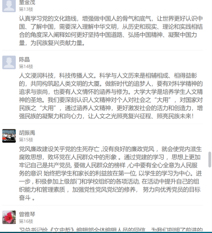 習(xí)近平總書記的回信在支部黨員中引起強(qiáng)烈反響,不僅在學(xué)習(xí)現(xiàn)場熱烈交流學(xué)習(xí)感想,還在線上學(xué)習(xí)通總支討論區(qū)紛紛留言發(fā)表心得體會。