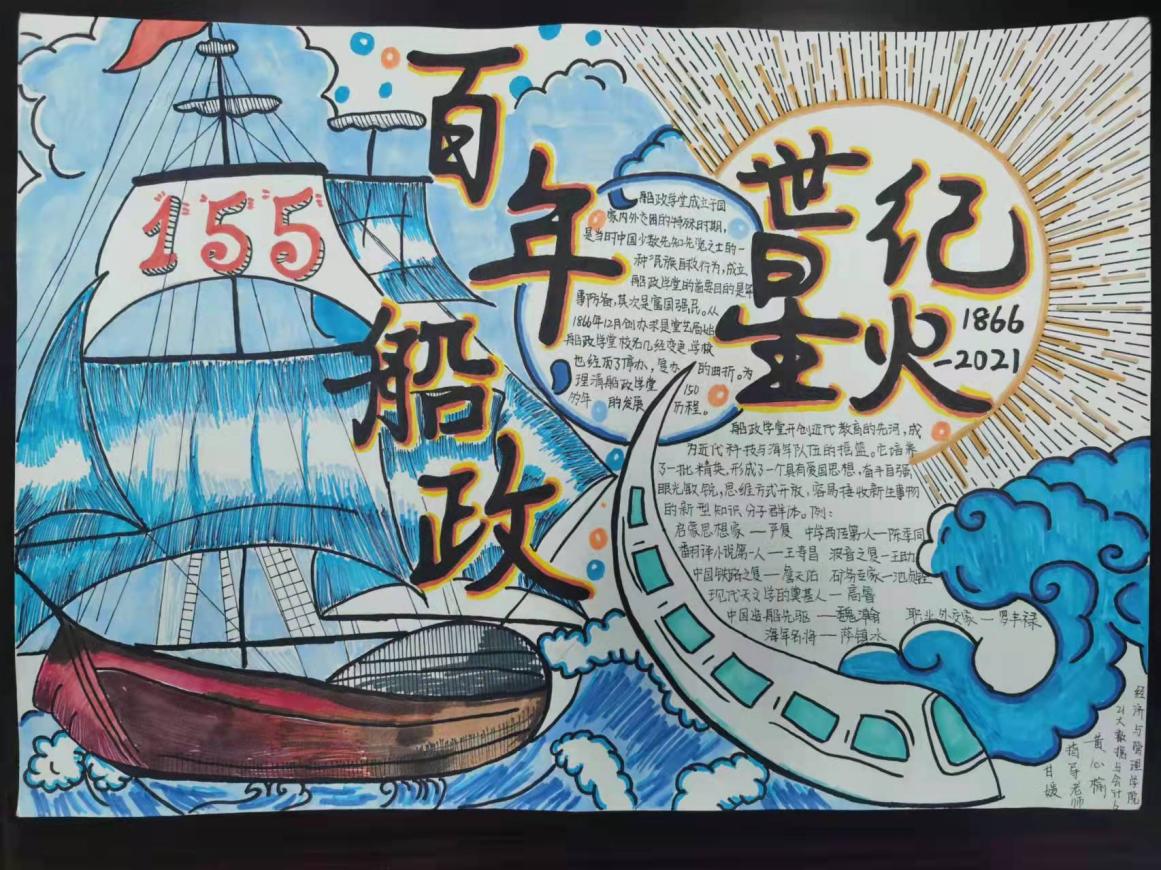 在船政杯-手抄報(bào)比賽和船政杯-DIY作品比賽中,同學(xué)們以“船”為主題,緊扣船政文化,通過手工制作船模、特色建筑模型、十字繡、剪紙、古時(shí)計(jì)數(shù)的算盤、數(shù)學(xué)用具,主題鮮明、富有創(chuàng)意、色彩運(yùn)用恰當(dāng)、體現(xiàn)美感和感染力,充分展示了豐富的想象力。