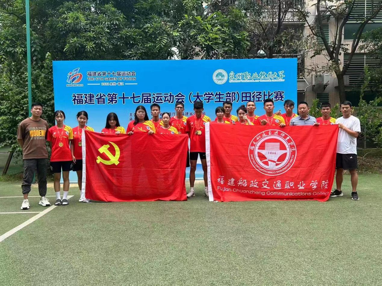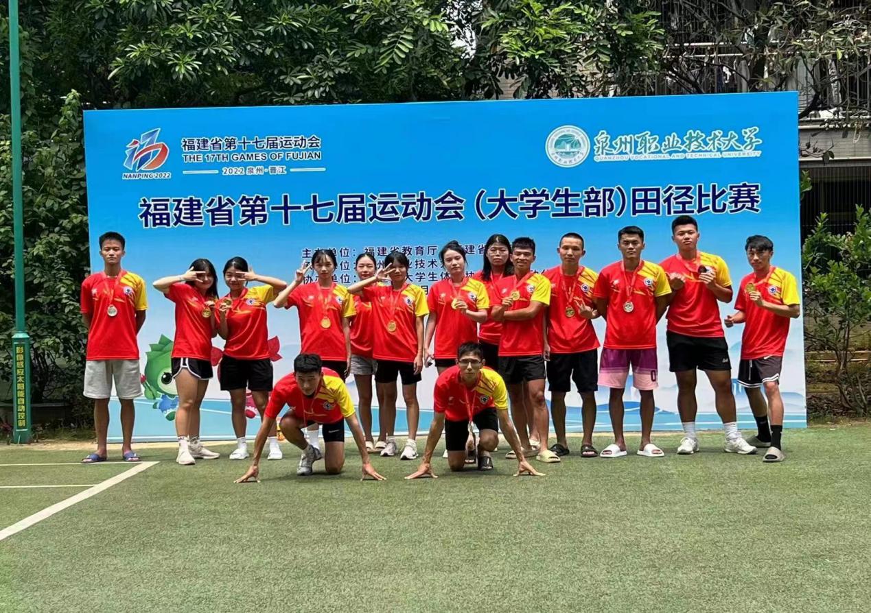 2022年7月31日——8月7日,福建省第十七屆運(yùn)動(dòng)會(huì)(大學(xué)生部)田徑比賽在泉州職業(yè)技術(shù)大學(xué)順利舉辦。此次比賽由福建省教育廳、福建省體育局主辦,共吸引來(lái)自省內(nèi)80多所高校的1500多位運(yùn)動(dòng)健兒參賽。經(jīng)過(guò)激烈角逐,我院田徑隊(duì)分別在丙組男子100米、200米、跳高、跳遠(yuǎn)、800米、鐵餅、1500米和5000米,女子100米、鉛球、鐵餅等項(xiàng)目斬金奪銀,以10金3銀3銅,改寫5項(xiàng)賽會(huì)記錄,以222分的優(yōu)異成績(jī)榮獲丙組團(tuán)體總分第一。