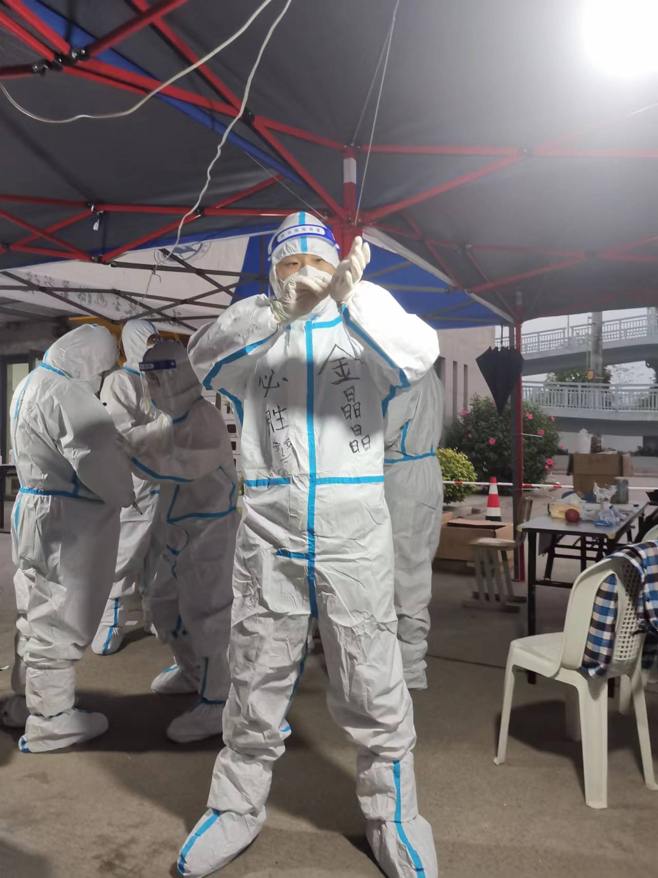 校園封閉管理期間,曾新平穿上防護服,化身“防護白”,聽從指揮,支援校內(nèi)全員核酸檢測、學(xué)生宿舍管理等工作。從學(xué)生生活物資的配送,到核酸檢測掃碼,不辭辛苦,認真負責(zé)。曾新平說,“愿疫情早點結(jié)束,福州加油!船政加油!”