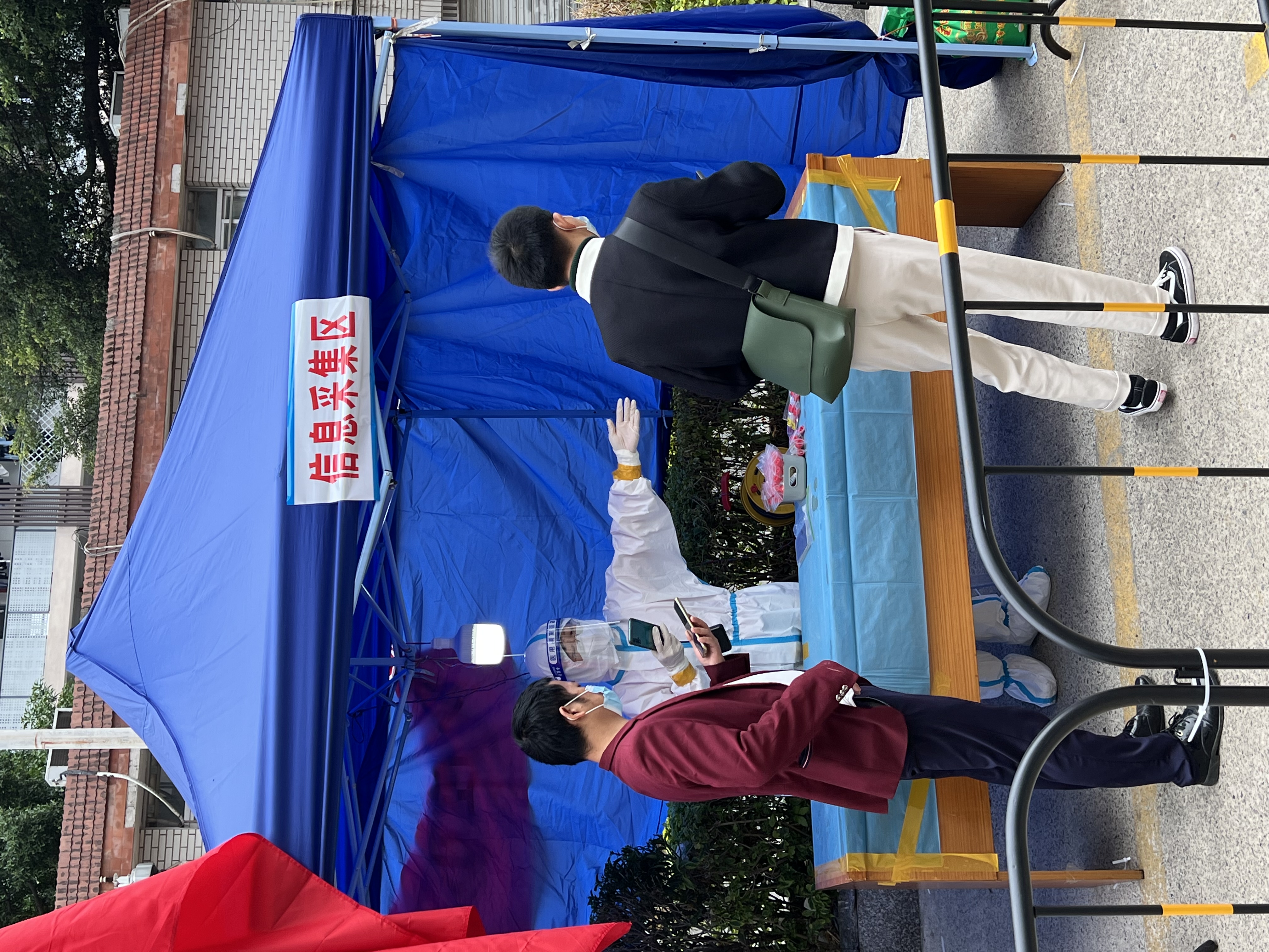 “請大家間隔一米,保持安全距離”“請佩戴好口罩”“請大家提前出示檢測二維碼”……在校內(nèi)全員核酸檢測現(xiàn)場,章青松化身掃碼員或引導(dǎo)員,與黨員教師志愿者并肩戰(zhàn)斗,全程配合。他們分工明確、配合默契,保障了核酸檢測工作的順利完成,用實際行動筑牢戰(zhàn)“疫”堡壘。