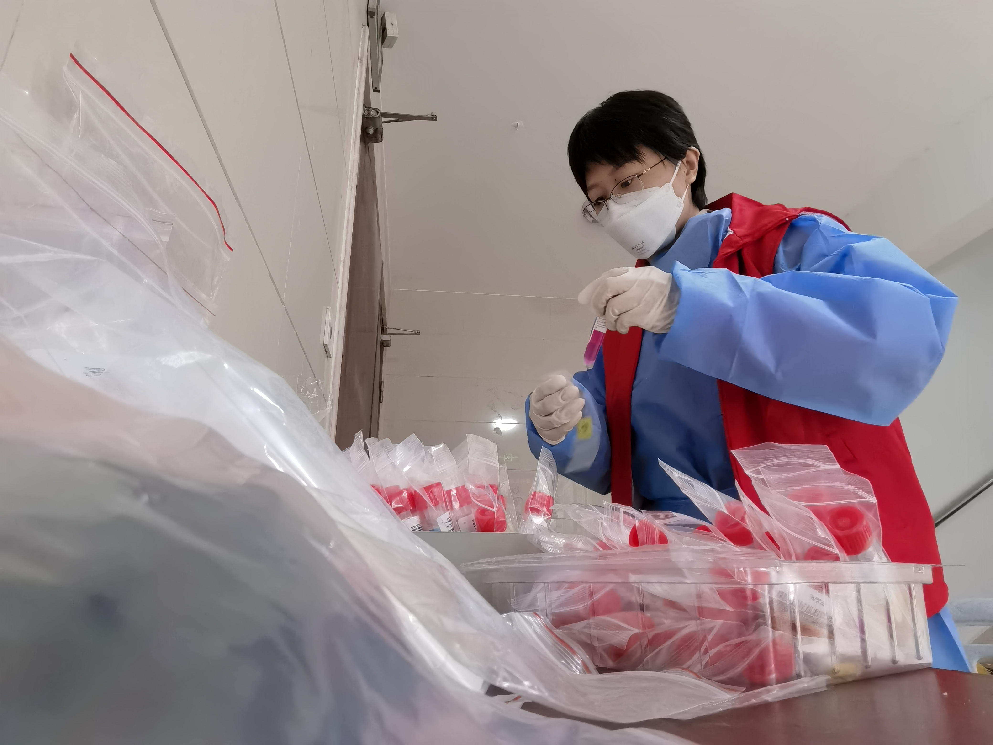 她就是我院曾雅琴老師,一天早上,她到萬里村核酸檢測點核酸采樣時,看見檢測點前去采樣的群眾多,就主動請纓,第一時間找工作人員報名當了志愿者。