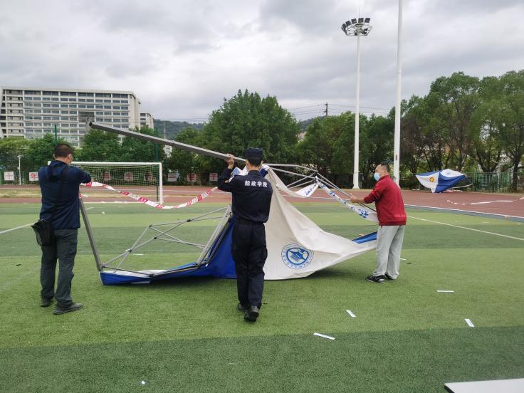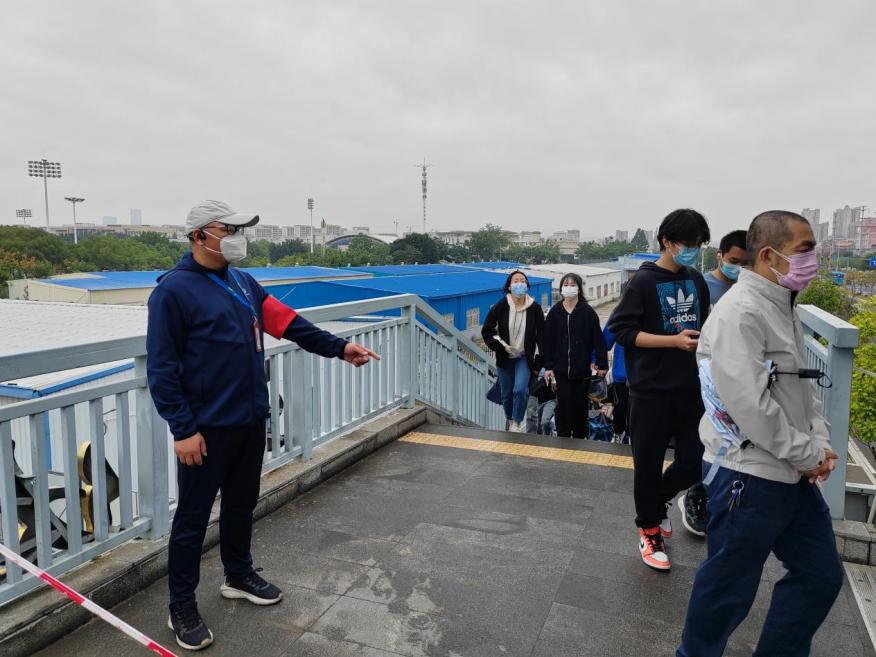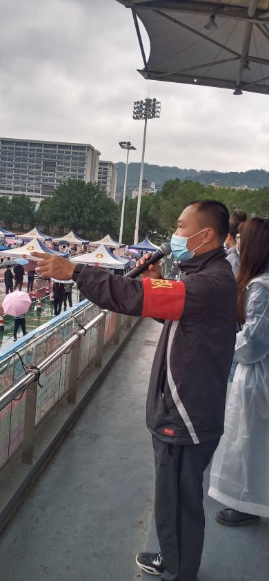 “請同學(xué)們保持一米間隔,打開健康碼,把手機屏幕調(diào)亮”。每天,郭建忠在學(xué)院青春田徑場(原名:北區(qū)田徑場)協(xié)調(diào)校內(nèi)全員核酸檢測人員秩序,助力校內(nèi)全員核酸檢測高效有序進行。校內(nèi)全員核酸檢測結(jié)束后,郭建忠和章青松、校園保安一起整理青春體育場核酸檢測現(xiàn)場。郭建忠說,“我們黨員要從大局出發(fā),積極服務(wù)學(xué)校疫情防控工作”。