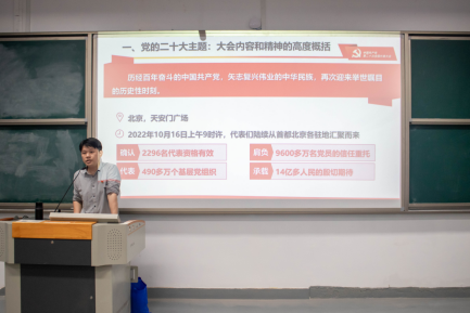 金晶晶結(jié)合深入學(xué)習(xí)貫徹習(xí)近平新時(shí)代中國特色社會(huì)主義思想,從深刻領(lǐng)會(huì)黨的二十大的主題、深刻領(lǐng)會(huì)過去5年的工作和新時(shí)代10年的偉大變革、深刻領(lǐng)會(huì)新時(shí)代新征程中國共產(chǎn)黨的使命任務(wù)、深刻領(lǐng)會(huì)中國式現(xiàn)代化的中國特色和本質(zhì)要求、深刻領(lǐng)會(huì)黨和國家事業(yè)的新部署新要求、深刻領(lǐng)會(huì)堅(jiān)持黨的全面領(lǐng)導(dǎo)和全面從嚴(yán)治黨的重大部署等6各方面進(jìn)行闡述,要深刻領(lǐng)悟加快建設(shè)教育強(qiáng)國、科技強(qiáng)國、人才強(qiáng)國的迫切需要,要努力學(xué)習(xí),將來成長為復(fù)合型技術(shù)技能人才,立足崗位建新功。