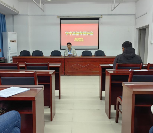 12月4日,通識教育學(xué)院開展學(xué)術(shù)道德講座。此次講座旨在增強(qiáng)教師對學(xué)術(shù)道德和學(xué)術(shù)規(guī)范的重視,維護(hù)學(xué)術(shù)誠信,促進(jìn)學(xué)術(shù)創(chuàng)新與發(fā)展。通識教育學(xué)院副院長金晶晶首先介紹了學(xué)術(shù)不端行為的常見形式及其嚴(yán)重后果,提醒教師在科研過程中時刻恪守學(xué)術(shù)規(guī)范,杜絕違規(guī)行為。金晶晶通報了幾起學(xué)術(shù)不端事件。