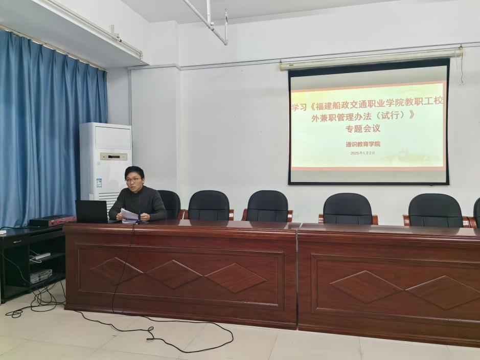 1月2日下午,通識(shí)教育學(xué)院召開期末教師大會(huì),全體教師參會(huì),會(huì)議總結(jié)了本學(xué)期的工作情況,部署2025年工作任務(wù)、學(xué)習(xí)《福建船政交通職業(yè)學(xué)院教職工校外兼職管理辦法<試行>》。