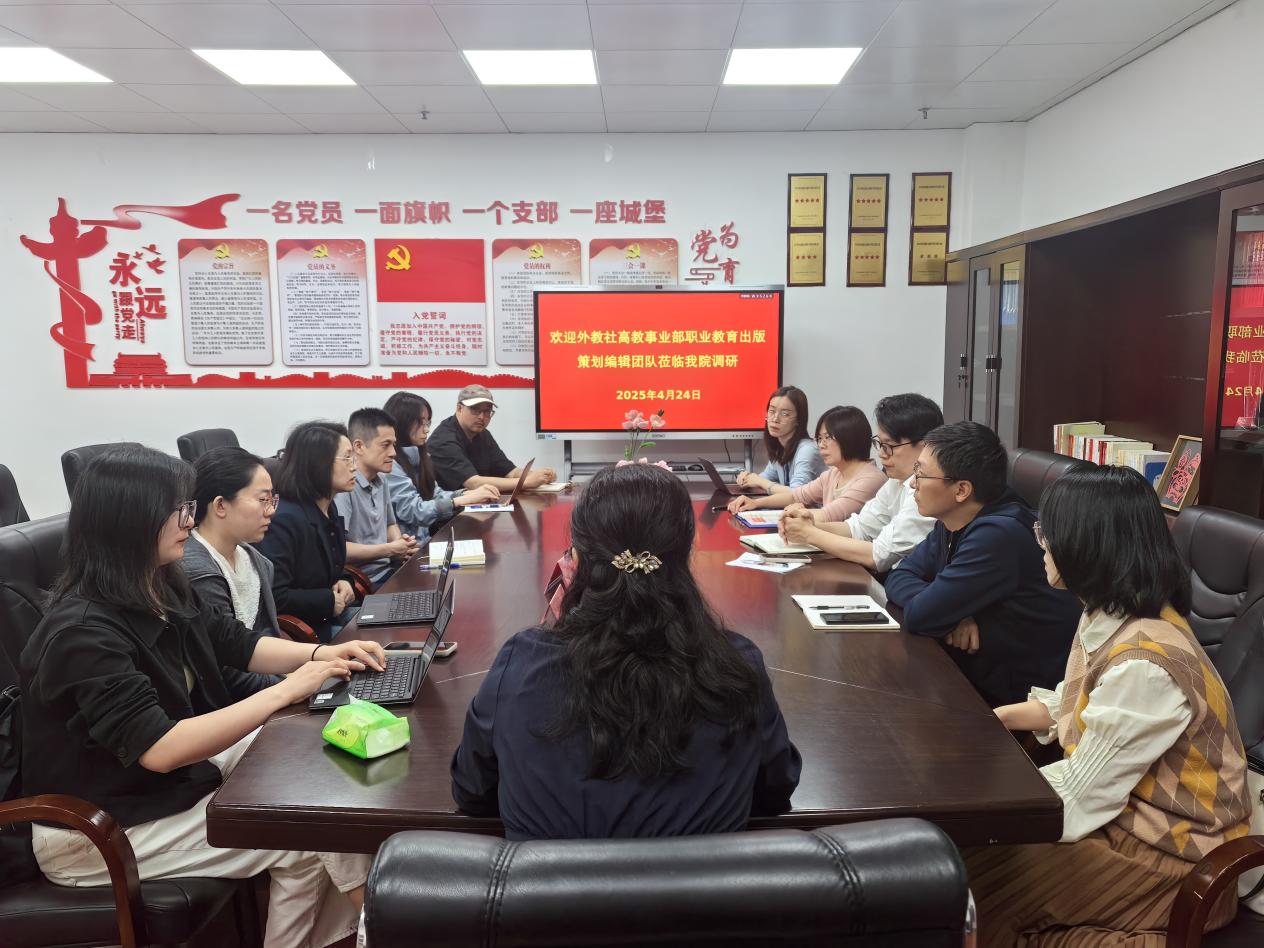 4月24日上午,外教社高教事業(yè)部職業(yè)教育出版策劃編輯團隊一行6人蒞臨我院調(diào)研,我院金晶晶副院長、辦公室主任謝哲偉,英語教研室主任章素蘋以及一線英語教師代表參加調(diào)研會議。