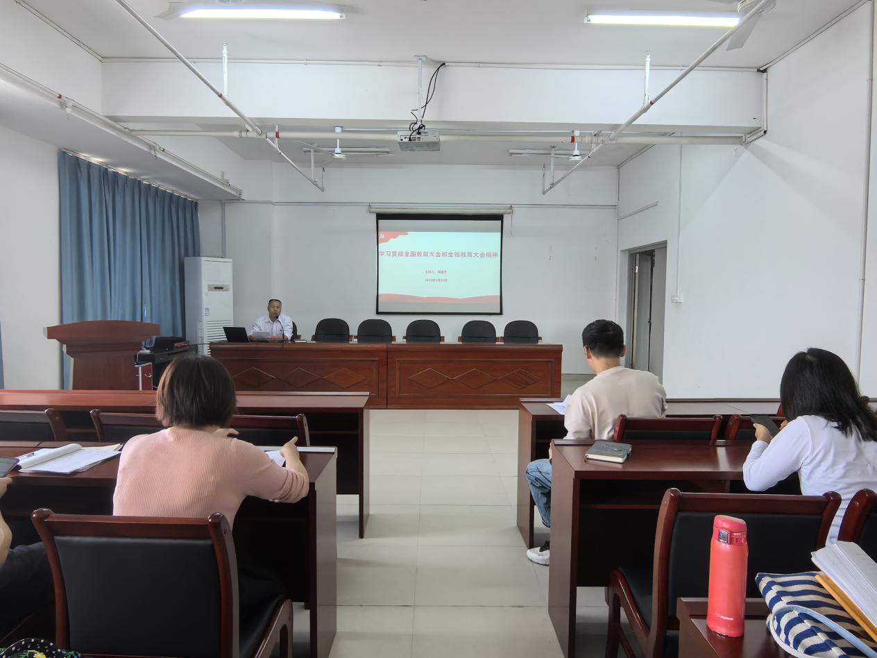 院長郭建忠以《學(xué)習(xí)貫徹全國教育大會和全省教育大會精神》為題,結(jié)合歷史脈絡(luò)與自身實(shí)際,詳細(xì)介紹了新時代我國教育事業(yè)取得的歷史性成就、發(fā)生的格局性變化,系統(tǒng)闡述了教育強(qiáng)國的科學(xué)內(nèi)涵和基本路徑,深刻闡述了教育強(qiáng)國建設(shè)要正確處理好的重大關(guān)系以及全面推進(jìn)強(qiáng)國建設(shè)的戰(zhàn)略任務(wù)和重大舉措。他勉勵全院黨員要深學(xué)細(xì)悟全國教育大會和全省教育大會精神主題,樹立遠(yuǎn)大理想、精進(jìn)業(yè)務(wù)本領(lǐng)、錘煉意志品質(zhì)、賡續(xù)優(yōu)良傳統(tǒng),為加快推進(jìn)教育強(qiáng)國、科技強(qiáng)國、教育強(qiáng)國建設(shè),以中國式現(xiàn)代化推進(jìn)中華民族偉大復(fù)興的中國夢作出更大貢獻(xiàn)。