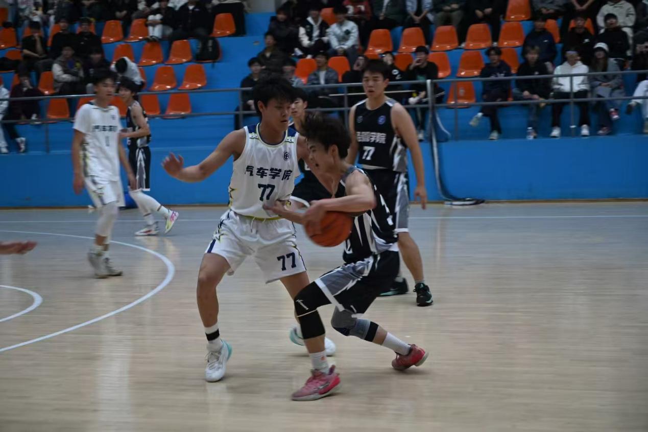 隨后是備受矚目的冠軍賽,現(xiàn)場氛圍推向了高潮。汽車學(xué)院與經(jīng)管學(xué)院這兩支強(qiáng)隊一次傳球、搶斷、投籃都牽動著在場觀眾的心。比賽開局階段,汽車學(xué)院便迅速進(jìn)入狀態(tài),憑借嚴(yán)密的防守和高效的進(jìn)攻火力搶占先機(jī)。進(jìn)入第四節(jié),經(jīng)管學(xué)院突然開啟“三分雨”模式,球員們接連命中三分,分差被一步步縮小。隨后,汽車學(xué)院的8號球員林祖慶挺身而出,他不僅憑借個人能力突破得分,還巧妙串聯(lián)隊友組織有效進(jìn)攻,帶領(lǐng)球隊發(fā)起一波凌厲攻勢重新穩(wěn)住局勢。經(jīng)管學(xué)院雖全力反擊,展現(xiàn)出極強(qiáng)的韌性,但最終未能逆轉(zhuǎn)局勢。當(dāng)終場哨聲響起,比分定格在63:49,汽車學(xué)院成功登頂,摘得本屆“新生杯”籃球賽冠軍桂冠,經(jīng)管學(xué)院獲得亞軍。汽車學(xué)院的8號球員林祖慶憑借高光的表現(xiàn),當(dāng)選為本屆賽事FMVP。