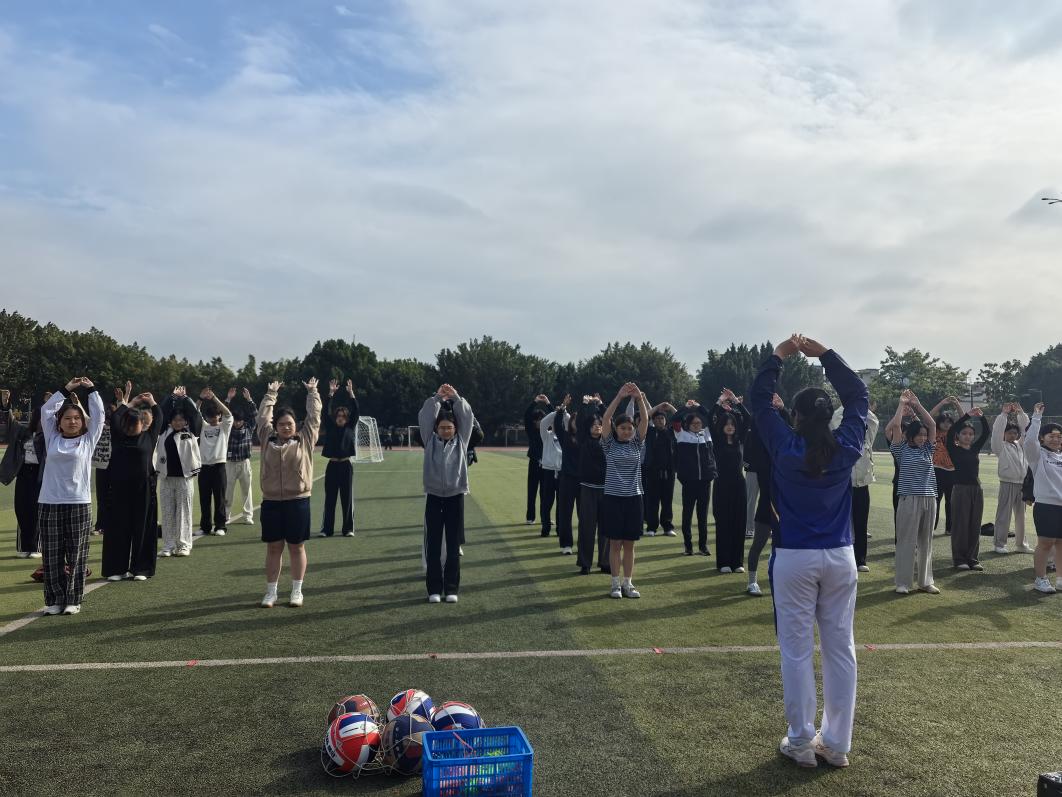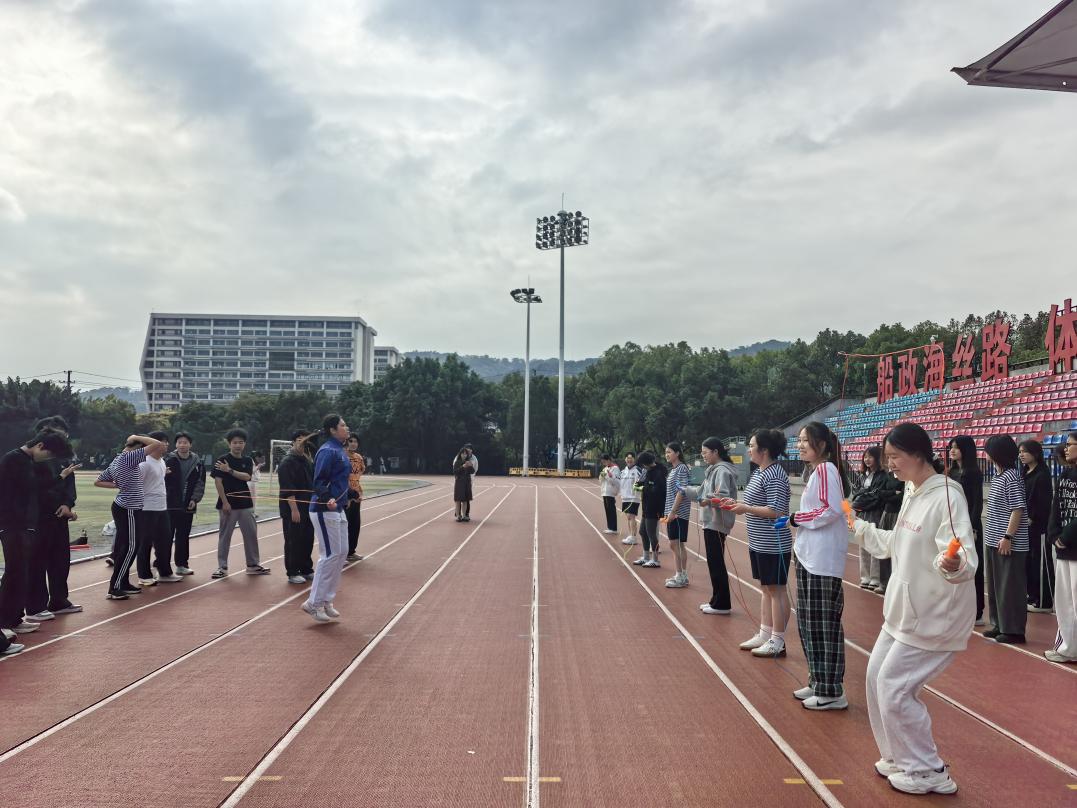 分享會后,在學(xué)院福道園青春田徑場,黃芊芊從系統(tǒng)的動態(tài)拉伸到科學(xué)的熱身流程,她親自示范,細(xì)致講解每一個動作的要點與保護原理。同學(xué)們緊跟冠軍穩(wěn)健的節(jié)奏,眼神專注,親身領(lǐng)悟著競技體育中那份獨特的嚴(yán)謹(jǐn)之美與活力之源。