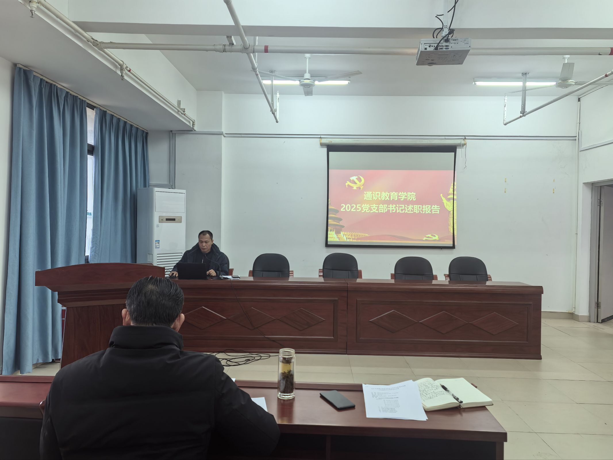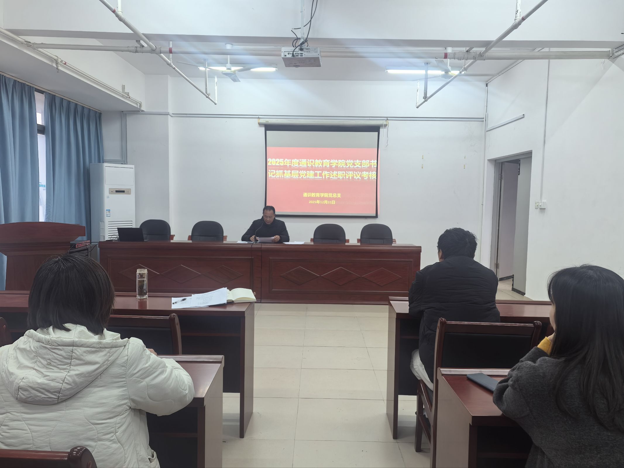 2025年12月31日,通識教育學院在福船園鑒知樓1013室召開2025年度黨支部書記抓基層黨建工作述職評議考核會議。會議由學院黨總支書記陳火城主持,各總支委員、黨支部書記、支部委員參加會議。