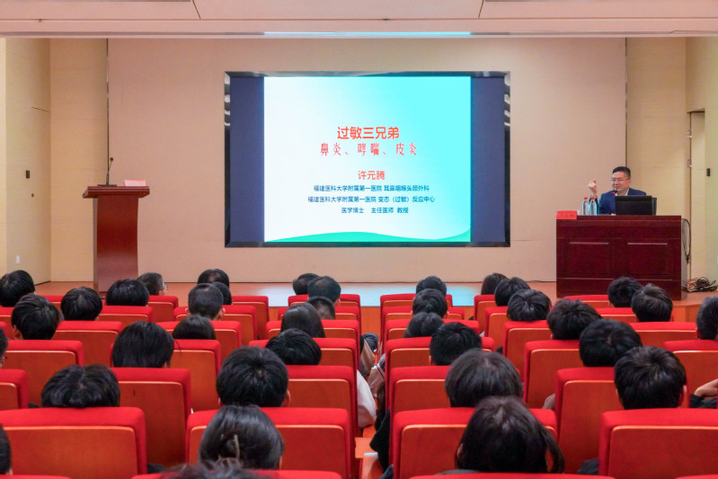 本次活動(dòng)學(xué)院邀請(qǐng)了福建醫(yī)科大學(xué)附屬第一醫(yī)院醫(yī)學(xué)博士、著名耳鼻咽喉-頭頸外科/過敏中心主任許元騰教授進(jìn)校開展《過敏三兄弟-鼻炎、哮喘與皮炎》科普知識(shí)講座。許教授以深入淺出的方式,詳細(xì)講解了過敏性鼻炎、哮喘和皮炎等常見過敏性疾病的成因、癥狀及預(yù)防方法,并強(qiáng)調(diào)過敏性疾病并不可怕,關(guān)鍵在于提高認(rèn)識(shí),科學(xué)防治。講座現(xiàn)場(chǎng)互動(dòng)氣氛熱烈,師生們紛紛表示受益匪淺。