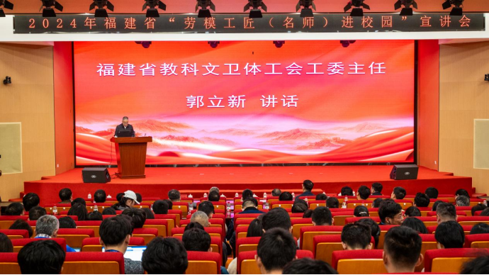 11月27日下午,主題為“勞動光榮·聲動校園”----2024 年福建省“勞模工匠(名師)進校園”系列活動---走進福建船政交通職業(yè)學院的活動在我院隆重舉行。本次活動由福建省總工會主辦,福建教育學院和我院共同承辦。省教科文衛(wèi)體工會工委主任郭立新、省教科文衛(wèi)體工會工委二級調(diào)研員左修坤、福建教育學院宣傳部部長、工會常務(wù)副主席范光基,學院黨委書記陳宜大,黨委委員、紀委書記張輝,黨委委員、副院長陳艷紅出席了本次活動,近300名師生代表參加活動。