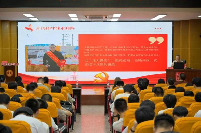 講座中,黃站長以質(zhì)樸語言講述30年電力一線堅(jiān)守故事:暴雨夜蹚水搶修、臺風(fēng)天獲市民撐傘,從老一輩職工步行交接班的勞動(dòng)精神啟蒙,到帶領(lǐng)團(tuán)隊(duì)攻克“龍王”臺風(fēng)136萬戶搶修難題。他結(jié)合工作室 “四融四帶四庫”體系,分享“刀片環(huán)削法”等創(chuàng)新成果及榜樣傳承力量,詮釋“0.01毫米級”工匠精神的專注與嚴(yán)謹(jǐn)。最后,他以“崗位是時(shí)代錨點(diǎn)”勉勵(lì)師生,將工匠精神融入日常,在平凡中錨定不凡坐標(biāo),以匠心點(diǎn)亮奮斗之路,為中國制造添磚加瓦。