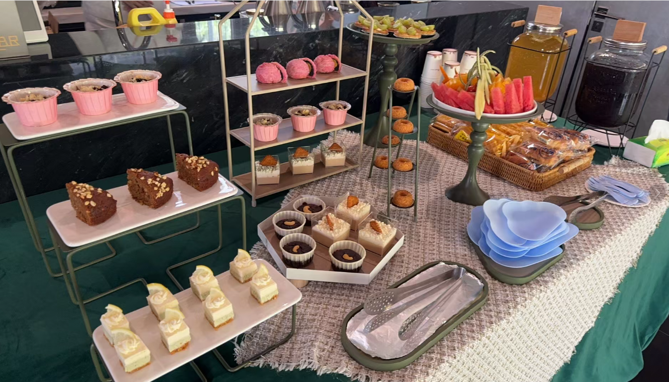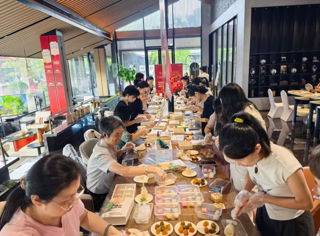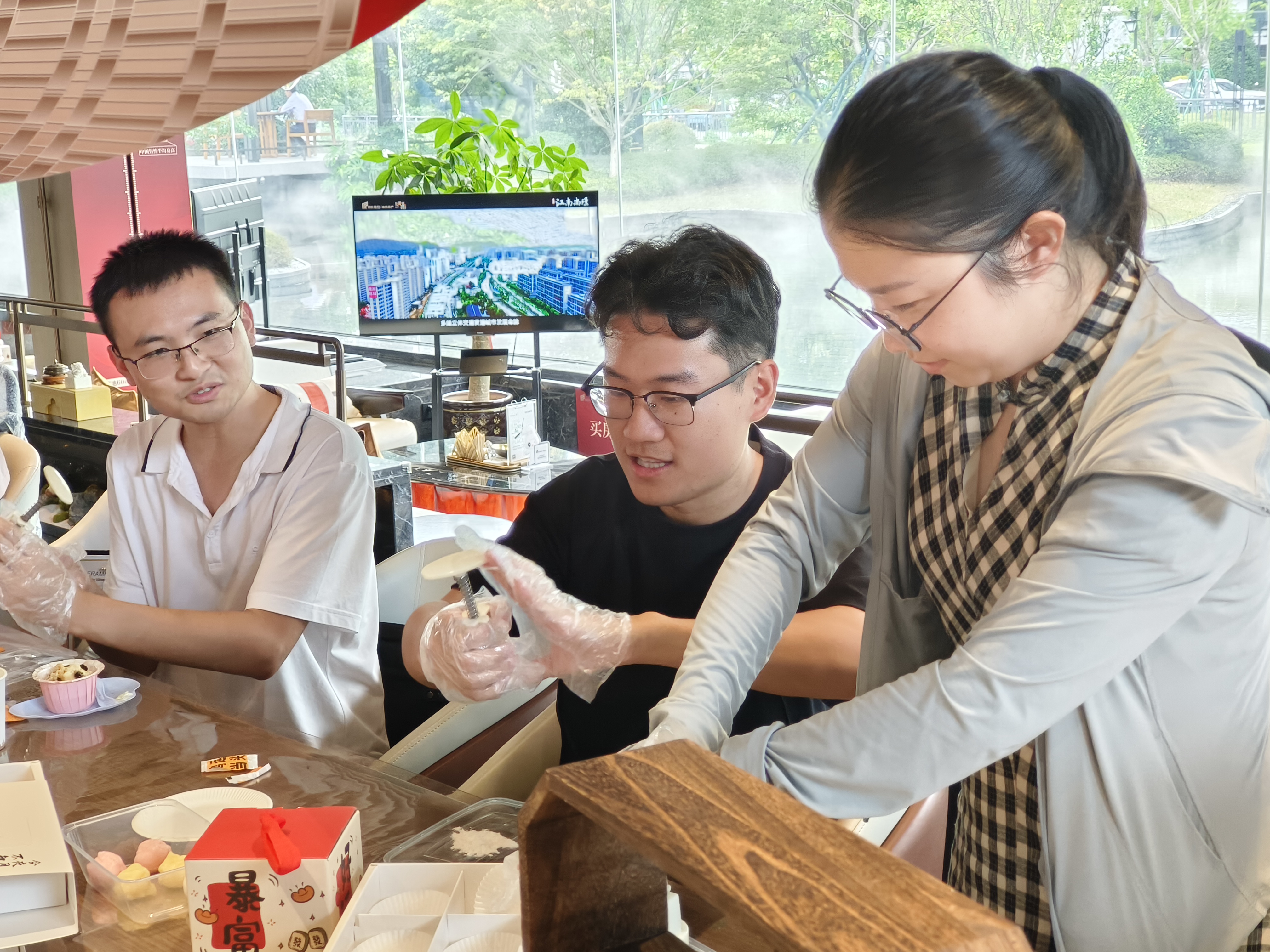 活動現(xiàn)場節(jié)日氣氛濃厚。趣味燈謎區(qū)懸掛著五彩繽紛的謎箋,涵蓋傳統(tǒng)文化、民俗知識、生活體驗等豐富內(nèi)容;兌獎區(qū)藍(lán)牙音響、遮陽傘、生活套裝等實用禮品吸引老師們踴躍參與;茶歇區(qū)精致可口的水果點心,為老師們提供交流互動輕松氛圍;手工冰皮月餅DIY環(huán)節(jié),老師們在面點師傅講解指導(dǎo)下,動手揉面、包餡、壓模,制作出造型雅致、寓意團(tuán)圓的冰皮月餅,共同感受中華傳統(tǒng)節(jié)日的文化魅力與船政大家庭的溫暖情誼。