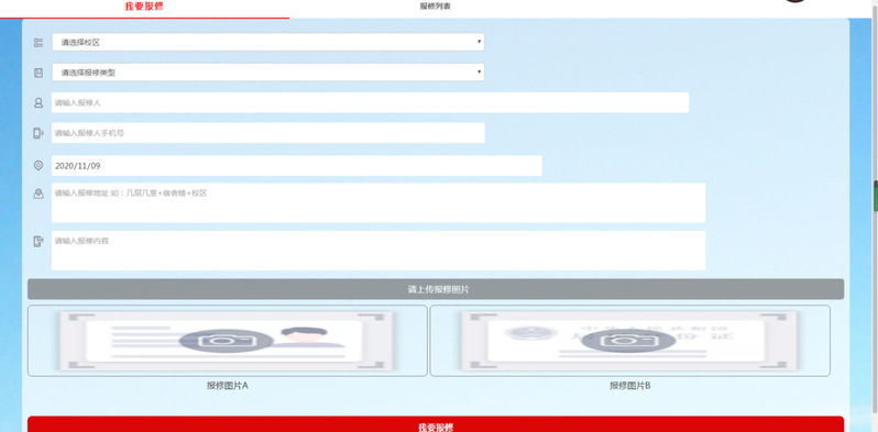 2、點擊智慧校園 報修平臺(請選擇校區(qū)、報修類型、填寫報修人、報修電話、報修地址、報修內(nèi)容并附上問題處圖片。根據(jù)實際情況進行報修、請勿重復報修),如有疑問可聯(lián)系物業(yè)服務(wù)電話:0591-83514173或直接到福建船政交通職業(yè)學院北區(qū)1#行政中心物業(yè)報修處報修。