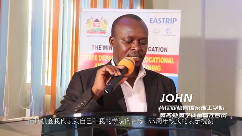 肯尼亞梅魯國家理工學(xué)院教務(wù)處教學(xué)質(zhì)量管理專員John M. kiura發(fā)來祝福視頻