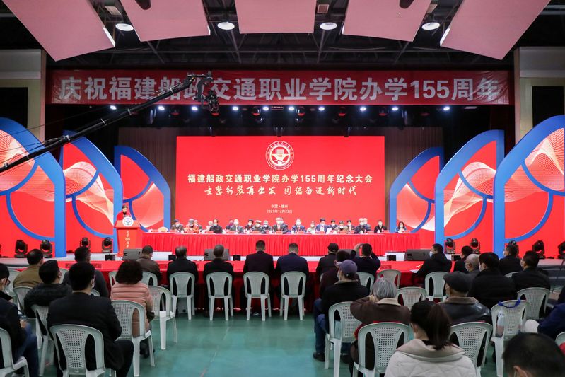 155年風(fēng)雨滄桑,弦歌不輟,155年薪火相傳,勇毅前行。12月23日上午10時,福建船政交通職業(yè)學(xué)院辦學(xué)155周年紀念大會在學(xué)院文體中心隆重舉行。學(xué)院老領(lǐng)導(dǎo)、各地校友會代表、離退休教師代表蒞臨大會現(xiàn)場。學(xué)院領(lǐng)導(dǎo)班子、學(xué)院合并升格前后的校友們,閩清職專、福建省船舶工程技術(shù)學(xué)校代表、師生員工代表出席大會。紀念大會設(shè)有主會場及3個分會場,并以線上直播形式同步舉行,九萬余人次通過線上觀看了紀念大會。