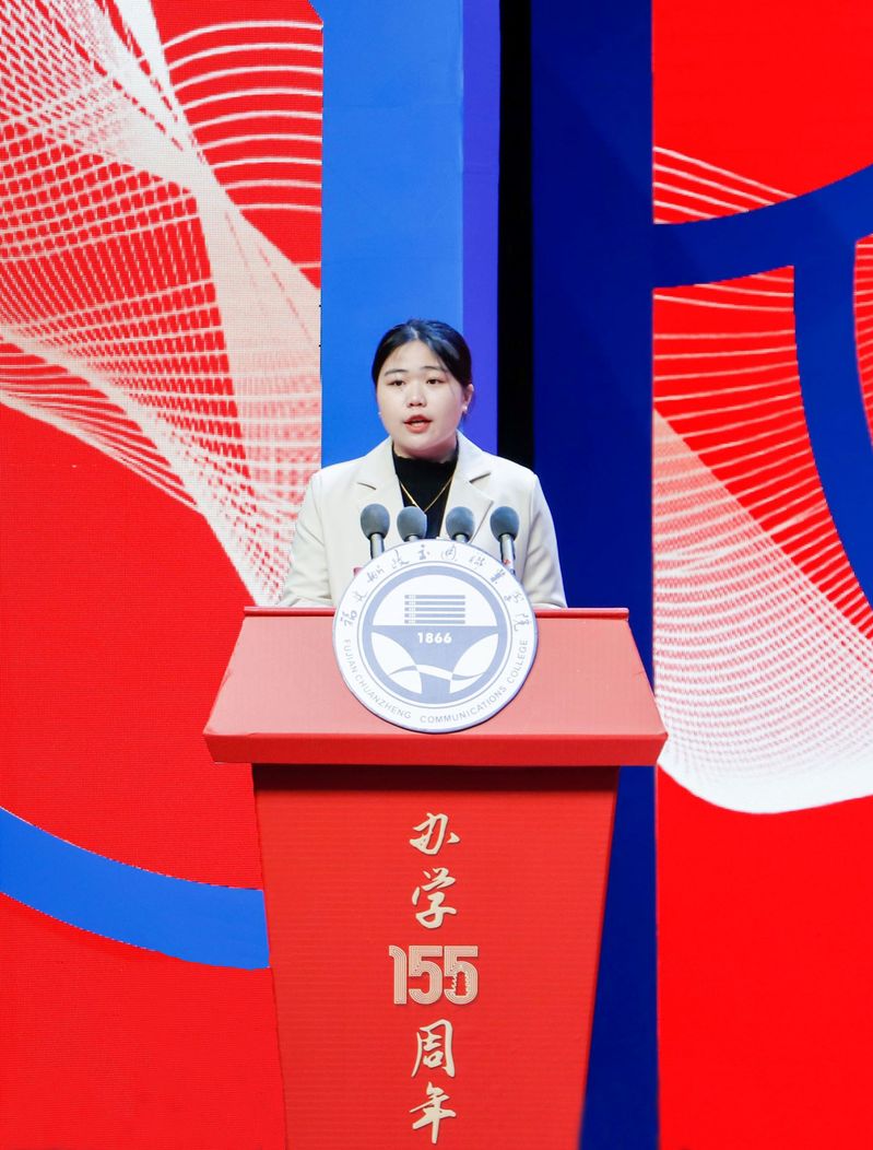 學(xué)生代表王鈺瑩同學(xué)發(fā)言中表達了對母校的祝福與感謝,并與全體在校生共勉,爭取早日實現(xiàn)“今天我以船政為榮,明日船政以我為榮”。