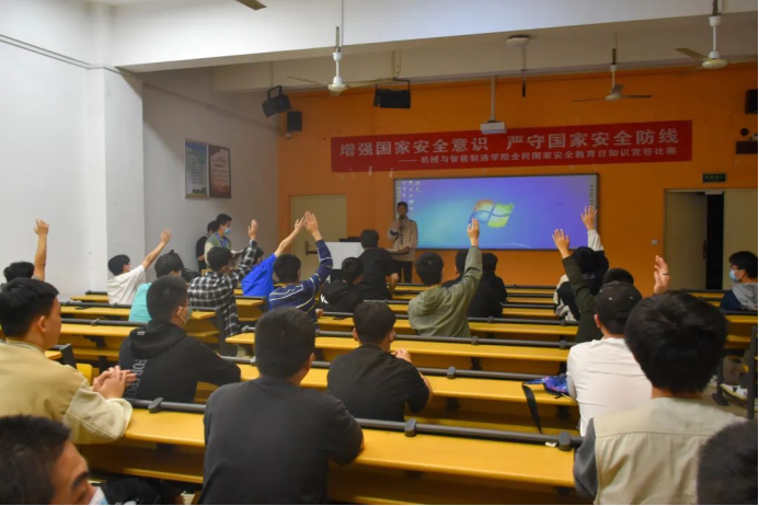 機械與智能制造學院于4月15日舉行“國家安全日知識競答”活動,學生通過觀看視頻,在有限的時間內(nèi)記住視頻中所要傳達的關(guān)鍵點進行競答,活動現(xiàn)場氣氛熱烈,收效良好。