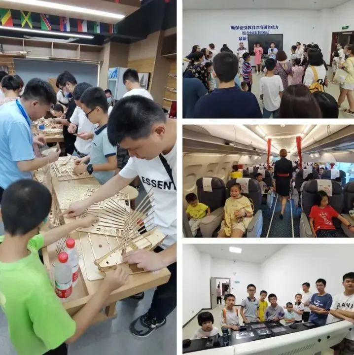 孩子們走進(jìn)航海模擬器,透過(guò)駕駛艙的屏幕,在360度的大屏幕上模擬在各種海域航行情況;通過(guò)船體模型拼裝,學(xué)習(xí)了船在水中航行的原理;參觀飛機(jī)模擬客艙,感受空乘的工作場(chǎng)景,體驗(yàn)購(gòu)票、值機(jī)、安檢、乘坐飛機(jī)過(guò)程。