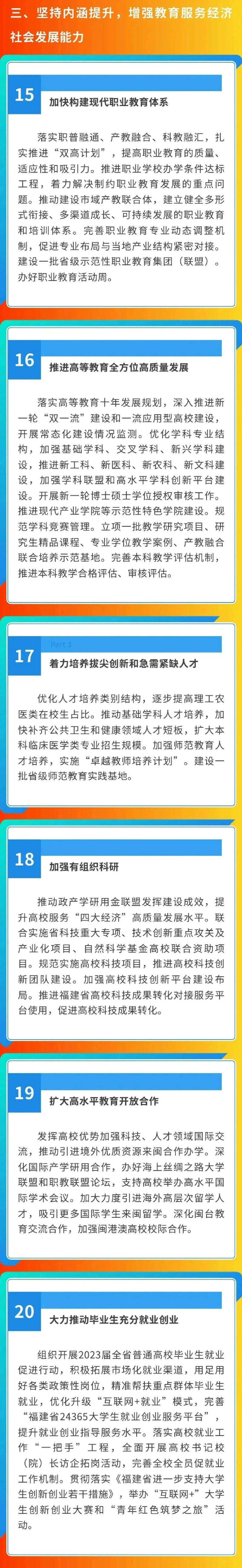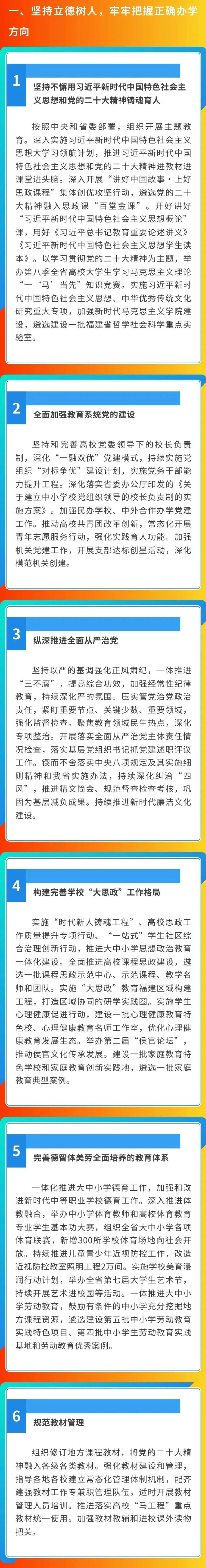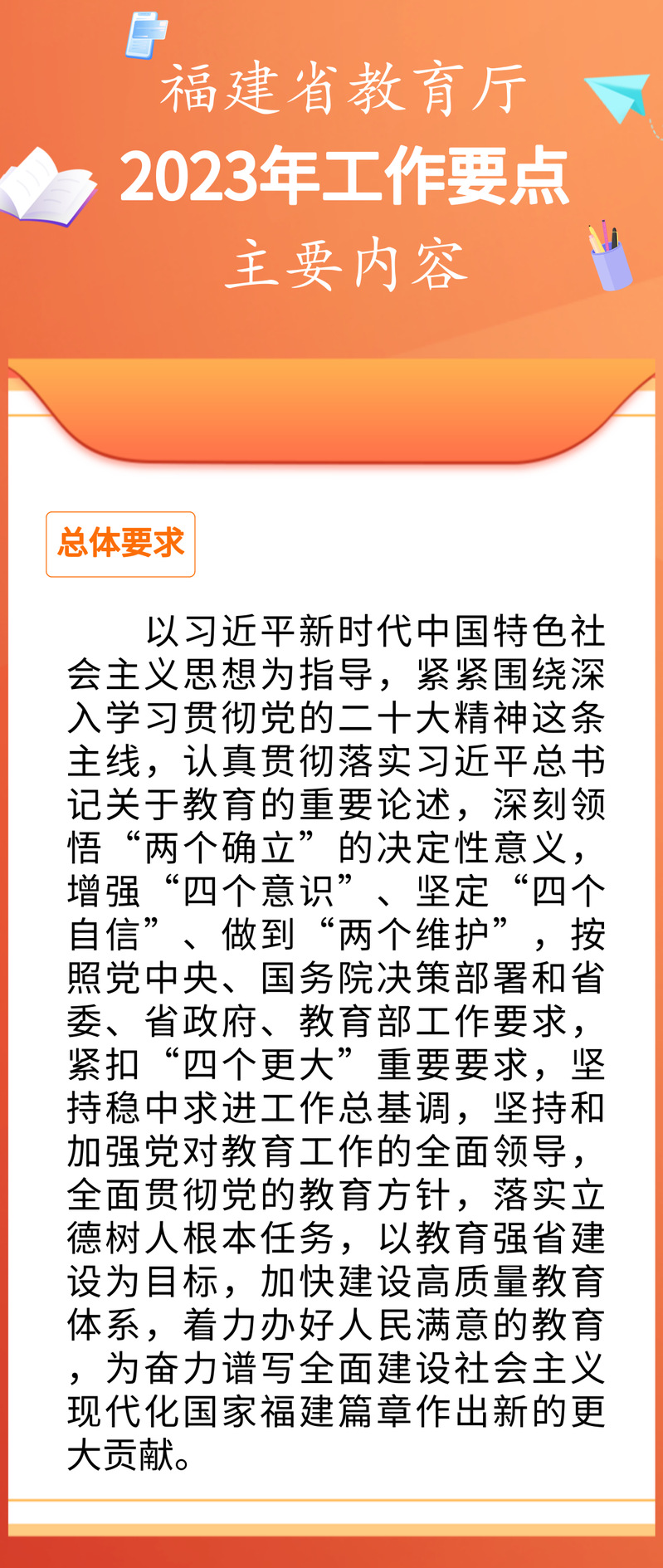 日前,福建省教育廳2023年工作要點(diǎn)印發(fā),提出5個(gè)方面29項(xiàng)工作要點(diǎn)。主要內(nèi)容如下:
