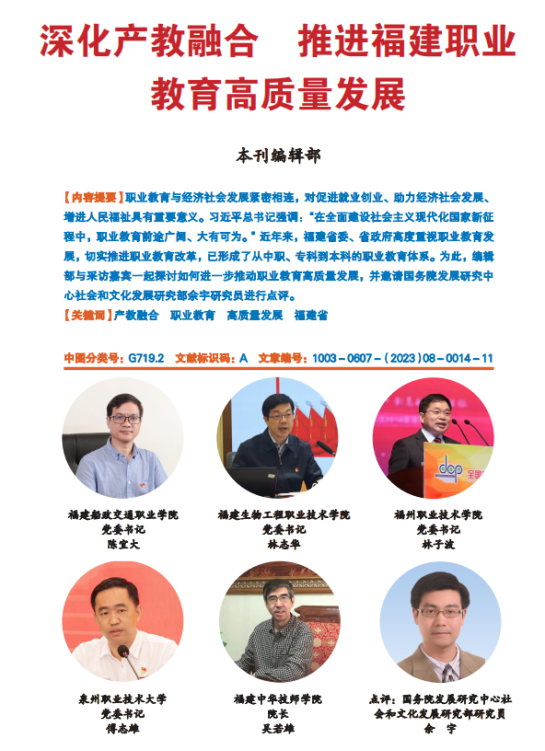 福建省人民政府發(fā)展研究中心主辦的《發(fā)展研究》2023年第8期“深學(xué)爭(zhēng)優(yōu)、敢為爭(zhēng)先、實(shí)干爭(zhēng)效”專欄,刊發(fā)了對(duì)學(xué)院黨委書記陳宜大的書面采訪,內(nèi)容如下: