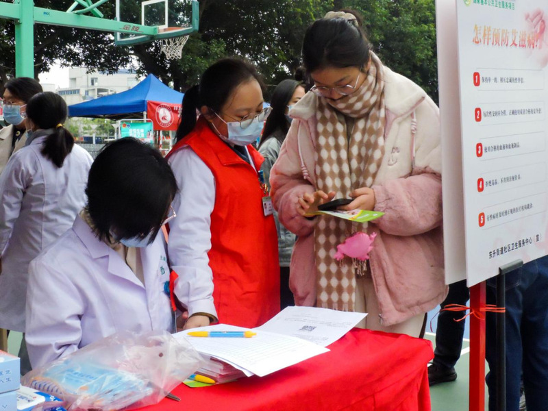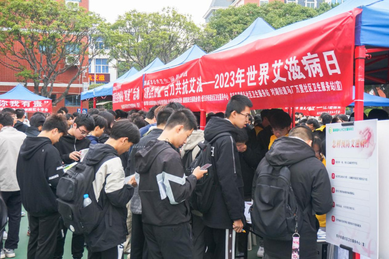 校院兩級紅會(huì)組織開展防艾簽名墻、紅絲帶DIY、祈愿手繪等創(chuàng)意游園會(huì),以生動(dòng)趣味的方式科普、宣傳防艾知識。東升街道衛(wèi)生院現(xiàn)場設(shè)置義診咨詢區(qū),家庭醫(yī)生簽約等宣傳展位,為同學(xué)們提供便民服務(wù)。