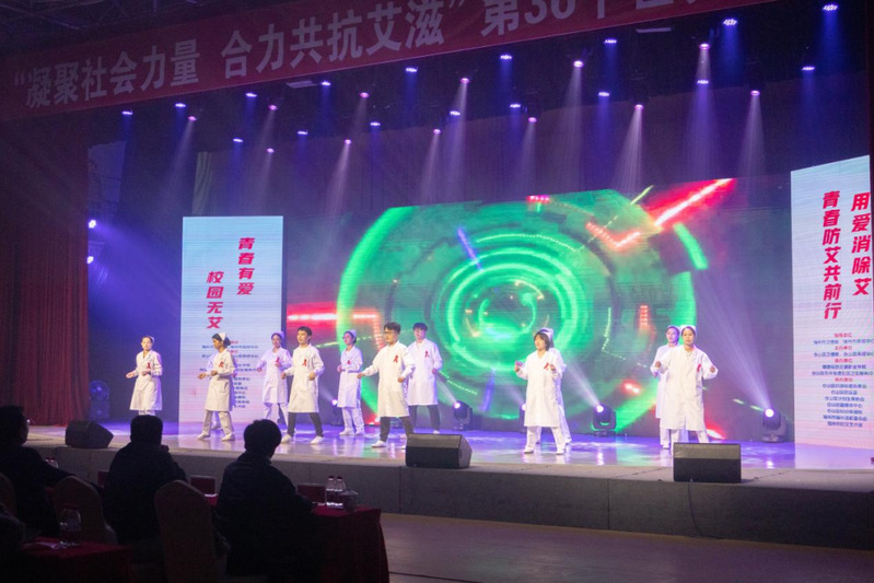 活動(dòng)現(xiàn)場,防艾藝術(shù)展演在學(xué)院主會(huì)場隆重舉行,文藝展演內(nèi)容豐富、生動(dòng)有趣,獲得現(xiàn)場師生們陣陣歡呼和掌聲。防艾藝術(shù)展演展示了近年改編的具有深刻教育意義的系列防艾節(jié)目,我院學(xué)生社團(tuán)、校藝術(shù)團(tuán)等帶來精彩節(jié)目。