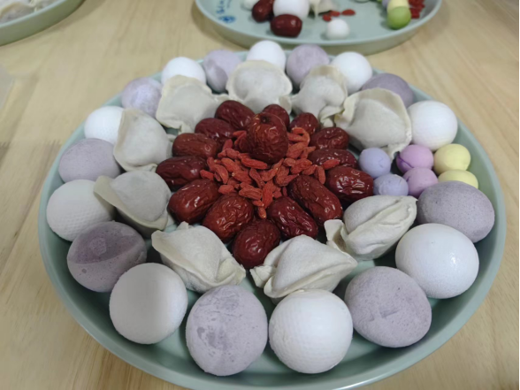 教師們和同學們圍坐一起聊冬至習俗、品嘗著熱氣騰騰的湯圓、餡多皮薄的餃子,臉上洋溢著幸福的微笑。