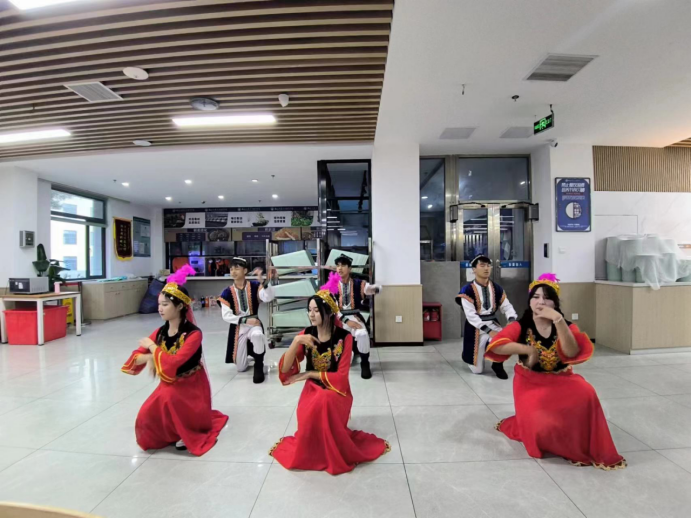 新疆籍學生身穿民族服飾,一首熱情奔放的維吾爾族舞蹈《花園》拉開了活動的序幕。優(yōu)美的舞姿充分展現(xiàn)了民族特色文化,與臺下師生的互動更是將全場的氣氛帶至高潮。