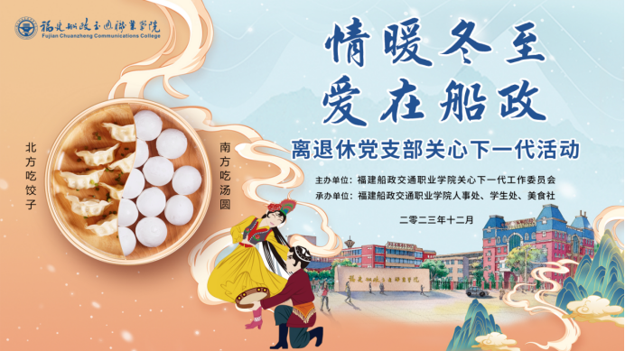 冬至大如年,人間小團圓。在冬至來臨之際,學院關工委和離退休黨總支在教工食堂成功舉辦“情暖冬至,愛在船政”關心下一代冬至主題活動。師生歡聚一堂,搓湯圓、包餃子、話習俗,現(xiàn)場歡聲笑語,暖意十足。