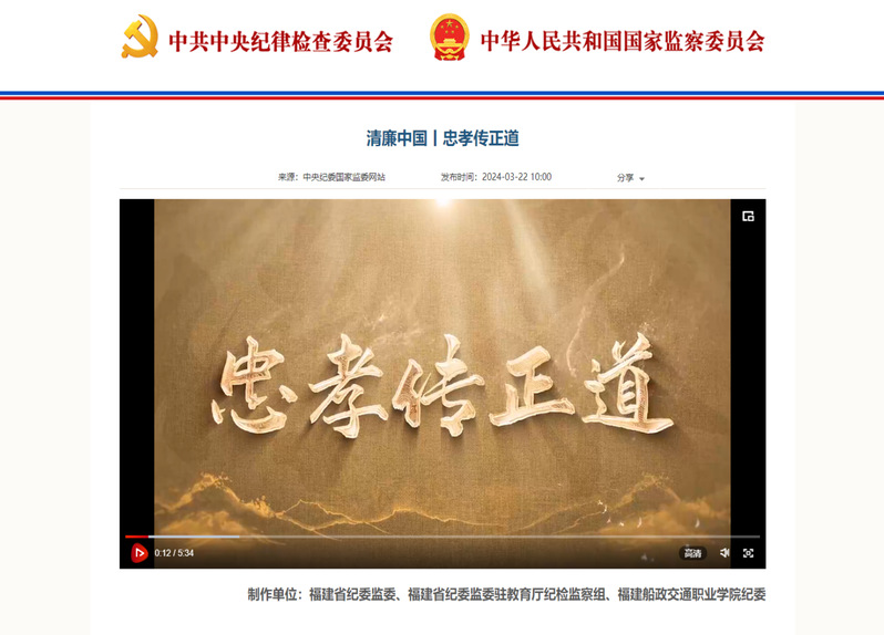 3月22日,中央紀(jì)委國家監(jiān)委網(wǎng)站“清廉中國”欄目,刊播嚴(yán)復(fù)家風(fēng)家訓(xùn)微視頻《忠孝傳正道》。