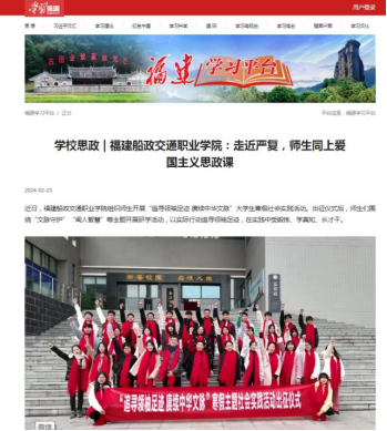 學(xué)院認(rèn)真落實(shí)福建省委教育工委要求,統(tǒng)籌部署、協(xié)同開(kāi)展“追尋領(lǐng)袖足跡 賡續(xù)中華文脈”大學(xué)生寒假社會(huì)實(shí)踐,成立社會(huì)實(shí)踐隊(duì),走進(jìn)嚴(yán)復(fù)故居、嚴(yán)復(fù)博物館等場(chǎng)所,開(kāi)展“文脈守護(hù)”“閩人智慧”等主題開(kāi)展研學(xué)活動(dòng),把“小我”融入到“大我”,在社會(huì)實(shí)踐中堅(jiān)定前行方向、找準(zhǔn)人生坐標(biāo)、扛起責(zé)任擔(dān)當(dāng)。本次主題社會(huì)實(shí)踐活動(dòng)得到學(xué)習(xí)強(qiáng)國(guó)福建學(xué)習(xí)平臺(tái)、福建高校思政網(wǎng)、新福建等多家媒體報(bào)道,取得了良好的育人成效和社會(huì)認(rèn)可。