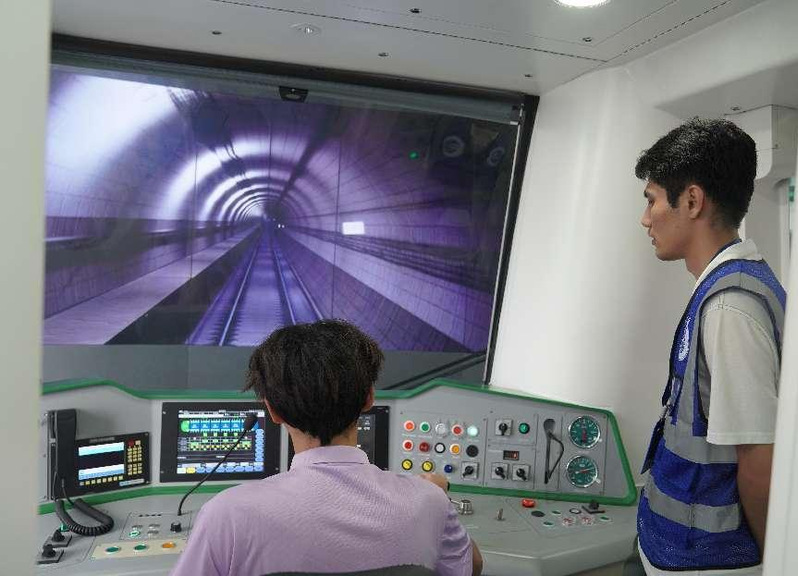 臺青、臺生們來到學(xué)院藝新樓參觀航海學(xué)院、通用航空學(xué)院、軌道交通學(xué)院及安全與環(huán)境學(xué)院的實(shí)訓(xùn)室,體驗(yàn)了航海模擬船舶駕駛、茶文化和茶藝、非物質(zhì)文化遺產(chǎn)“福船”制作工藝、旋翼機(jī)模擬操作、無人機(jī)操作、軌道列車模擬駕駛等,感嘆國家交通運(yùn)輸技術(shù)的進(jìn)步,在老師的指導(dǎo)下爭相試乘試駕,格外激動,紛紛拍照留念。