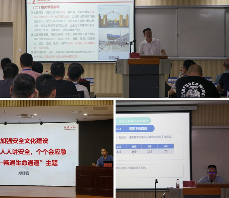 此次培訓(xùn)內(nèi)容豐富,形式多樣。邀請(qǐng)到了福建省交通運(yùn)輸廳綜合執(zhí)法監(jiān)督局四級(jí)調(diào)研員黃生存、原省公路事業(yè)發(fā)展中心副主任鄭輝喜、福建省應(yīng)急管理專(zhuān)家嚴(yán)益芳為學(xué)員們做專(zhuān)題講座。內(nèi)容涵蓋福建省路政管理(執(zhí)法)體制介紹、執(zhí)法安全防護(hù)、高速公路安全隱患排查等方面。除專(zhuān)題講座外,還前往福建省高速公路路網(wǎng)監(jiān)控指揮中心、青云山服務(wù)區(qū)等單位進(jìn)行現(xiàn)場(chǎng)教學(xué)及業(yè)務(wù)交流。