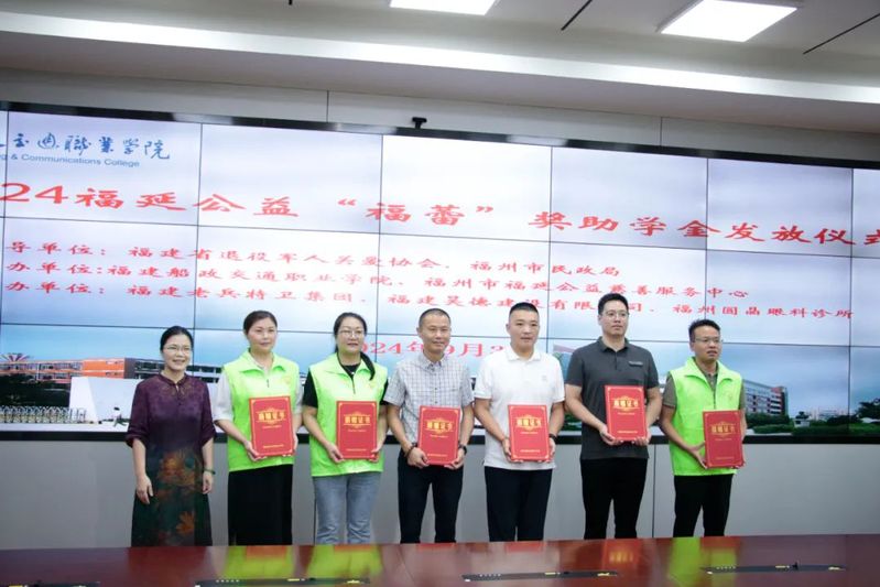 近日,2024福延公益“福蕾”獎(jiǎng)助學(xué)金發(fā)放儀式在福道園行政樓六樓會(huì)議室圓滿舉行。省退役軍人事務(wù)廳原二級(jí)巡視員、福建省關(guān)愛(ài)退役軍人協(xié)會(huì)會(huì)長(zhǎng)李提金,福建省關(guān)愛(ài)退役軍人協(xié)會(huì)秘書(shū)長(zhǎng)劉首冰,學(xué)院黨委委員、副院長(zhǎng)陳艷紅,福延公益榮譽(yù)理事長(zhǎng)、福建省傳習(xí)書(shū)畫(huà)院院長(zhǎng)李靖,福建老兵特衛(wèi)集團(tuán)、福建昊德建設(shè)有限公司、福州圓晶眼科診所等愛(ài)心企業(yè)和愛(ài)心人士,以及受助學(xué)生參加了發(fā)放儀式。