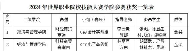 “技炫青春 能創(chuàng)未來”,2024年世界職業(yè)院校技能大賽落下帷幕。本次大賽由教育部牽頭,聯(lián)合35個國家相關部委及事業(yè)組織共同主辦,共設置了42個賽道,總決賽分爭奪賽、排位賽、冠軍總決賽三個階段進行,其中爭奪賽在全國各地32個賽區(qū)舉行。我院派出由90名學生、46名指導老師組成的23支隊伍,代表福建省參賽。