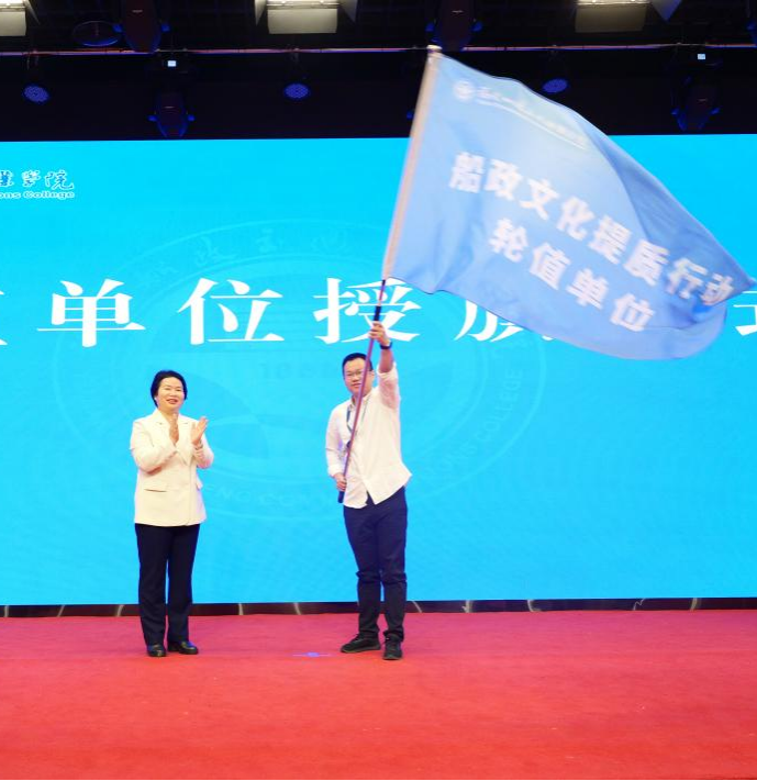 授旗儀式上,經(jīng)濟(jì)與管理學(xué)院接過(guò)輪值單位旗幟,鄭重承諾將凝聚師生力量,推動(dòng)活動(dòng)長(zhǎng)效開(kāi)展。