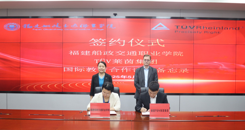 5月9日,學(xué)院同德國TüV 萊茵集團(tuán)在福船園行政樓會(huì)議室舉行國際教育合作諒解備忘錄簽約儀式。TüV萊茵集團(tuán)全球職業(yè)教育總監(jiān)Carlo Humberg ,TüV 萊茵大中華區(qū)職業(yè)教育總經(jīng)理陳俊東,萊茵中檢(福建)技術(shù)有限公司副總經(jīng)理趙東岳、經(jīng)理孫代新,福建船政交通職業(yè)學(xué)院黨委副書記、院長陳群,黨委副書記張輝等校企領(lǐng)導(dǎo)出席活動(dòng)。