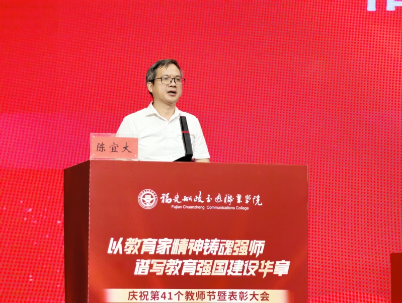 9月10日下午,我院舉行慶祝第41個(gè)教師節(jié)暨表彰大會(huì)。黨委書記陳宜大,黨委副書記、院長陳群,黨委副書記張輝,紀(jì)委書記謝建山,副院長陳常暉出席會(huì)議。會(huì)議由陳常暉主持。全體教職工、榮退人員代表、福建閩清職業(yè)中專學(xué)校代表、校友代表、學(xué)生代表歡聚一堂,共同參加此次會(huì)議。本次慶祝表彰大會(huì)采用線下會(huì)場和線上直播同步進(jìn)行。