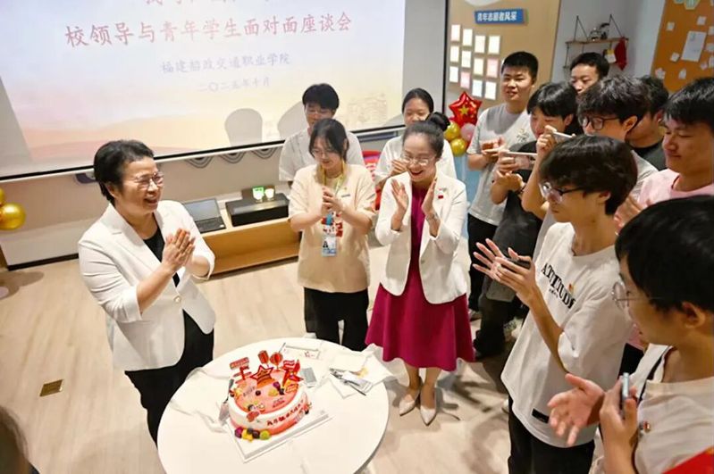 在青年之家,同學(xué)們圍繞專業(yè)發(fā)展、擇業(yè)方向、個(gè)人規(guī)劃及校園生活等話題踴躍發(fā)言;學(xué)院黨委副書記張輝與學(xué)院團(tuán)委書記陳慧認(rèn)真傾聽,對(duì)同學(xué)們提出的困惑逐一進(jìn)行詳細(xì)解答并開展深入交流。座談會(huì)上,張輝副書記與師生們共同為新中國成立76周年慶生,師生們高聲祝福“祖國生日快樂”,現(xiàn)場(chǎng)氣氛高漲,溫馨的一幕為座談會(huì)畫上了圓滿的句號(hào)。