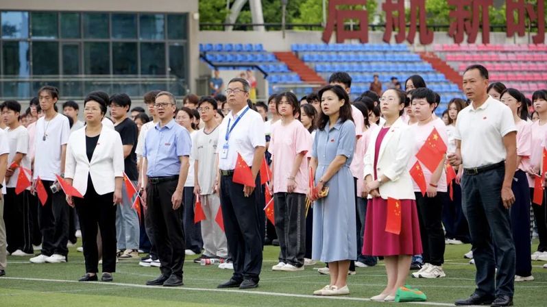 校國旗護衛(wèi)隊邁著鏗鏘堅定的步伐昂首前行,每一步都飽含赤誠;鮮艷的五星紅旗在朝陽映照下,于師生的肅立注目中冉冉升起、迎風(fēng)展揚。嘹亮國歌回蕩校園,師生目光緊緊追隨著國旗,“青春向黨,強國有我” 的信念,在這莊嚴時刻深深鐫刻心間。