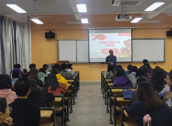 福建船政交通職業(yè)學院交通經(jīng)濟系關于新中國70年經(jīng)濟社會發(fā)展回顧講座于2019年12月1日下午16:00在經(jīng)管樓208成功召開。本次講座由陳宏主任主講, 18級報關全體同學準時到場。