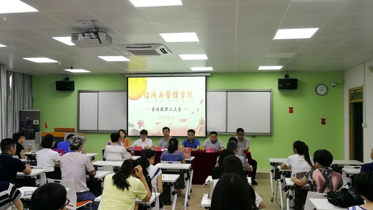 7月22日下午,新成立的經(jīng)濟與管理學院第一次全體教師大會在31#407舉行。經(jīng)濟與管理學院俞素平書記、房曰榮院長、林麗萍副書記、吳吉明副院長、林穎副院長、副處級組織員黃瑞秋及全體教職員工參加了會議。會議由經(jīng)濟與管理學院黨總支副書記林麗萍主持。