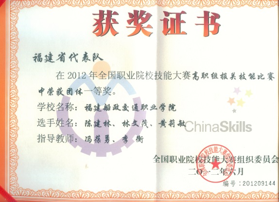 全國高職院校技能大賽報關技能賽項國賽一等獎