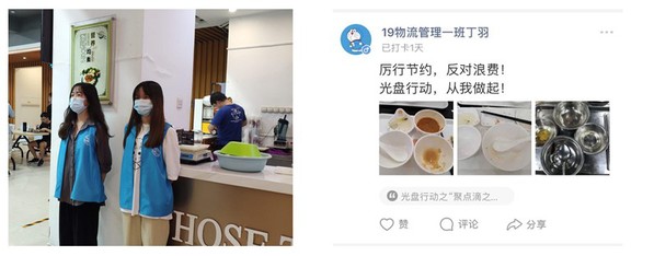 為使光盤行動在教師與學(xué)生群體中真正實(shí)施到位,并逐步培養(yǎng)不浪費(fèi)糧食的習(xí)慣,此次的光盤活動結(jié)合了線上和線下的活動方式,例如通過班級招募“光盤”督導(dǎo)志愿者、舉辦線上“光盤”打卡活動等,吸引了全體經(jīng)管師生參與,使師生們真正將“倡議”化為“行動”、讓“光盤”成為現(xiàn)實(shí)。