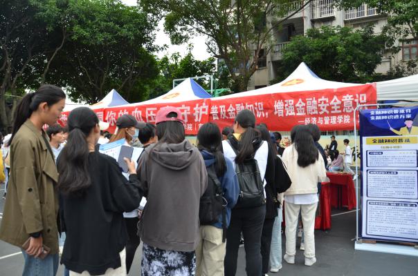 志愿者們將金融知識宣傳單送到同學(xué)們手中,并就同學(xué)的一些疑問,進行了現(xiàn)場解答。同學(xué)們對志愿者們專業(yè)的知識素養(yǎng)和熱情的服務(wù)態(tài)度贊不絕口,此次活動在熱烈的氛圍中圓滿結(jié)束并取得了良好的反響。