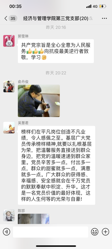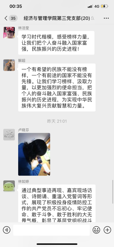 觀看過程中,黨員同志們?cè)邳h員微信群內(nèi)積極發(fā)言,交流觀看心得。