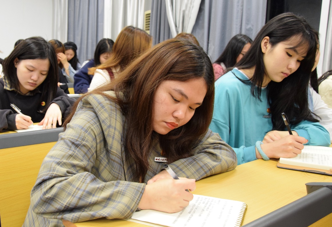 講座中,主講講師首先帶領(lǐng)同學(xué)們共同回顧的黨的艱難歷程,從習(xí)仲伯同志“斷齒喬裝”寧愿打碎牙齒裝乞丐也要將情報送到黨的手里再到莫雄同志“上海結(jié)義”為了中國的未來不惜放棄身在國民黨的榮華富貴為共產(chǎn)黨帶來了寶貴的財富,一個個紅色經(jīng)典在今夜燃燒著同學(xué)們的的心,同學(xué)們認(rèn)真聆聽積極配合講師互動,并記錄講座內(nèi)容,緊接著講師用風(fēng)趣的語言,生動的事例,從孝到家,從家到國,深入淺出地講解了黨史,讓廣大青少年對黨史有了更為深刻的理解,當(dāng)講師講到“鐵桶計劃”時,在場的同學(xué)紛紛表示,想像項與年同志一樣,努力學(xué)習(xí),報效祖國,為實現(xiàn)中華民族偉大復(fù)興做出自己應(yīng)有的貢獻。講座最后同學(xué)們認(rèn)真寫下了新的感悟并與同學(xué)講師一同分享提出自己的看法和疑問,講師也一一為同學(xué)們答題解惑。